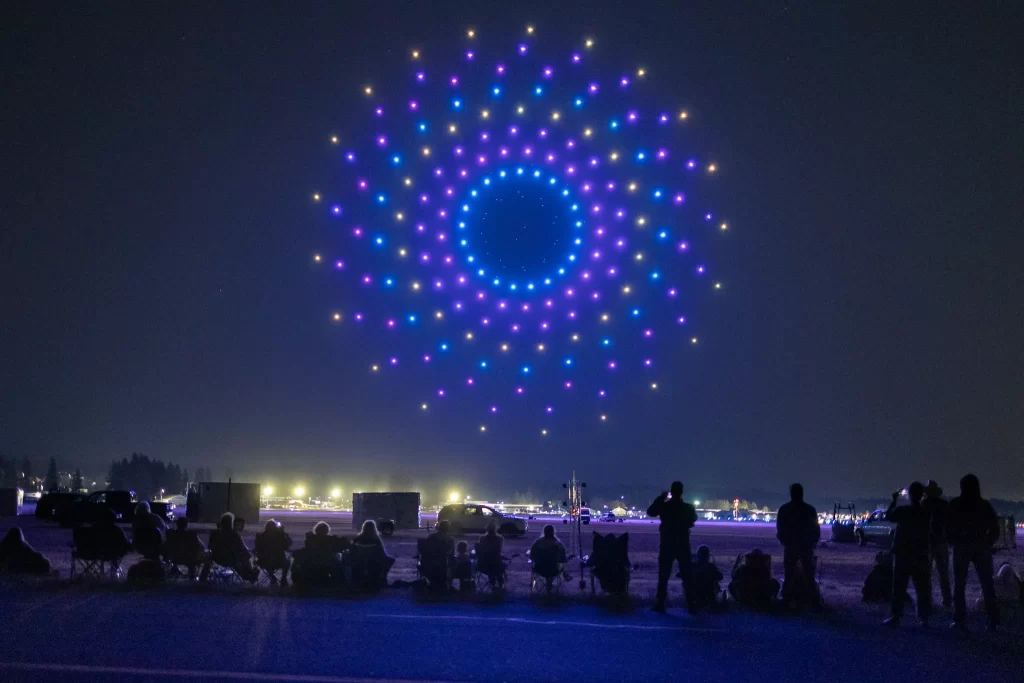 - Holiday programming and countdowns – Seasonal motifs, New Year events, and national commemorations in coordinated flight.